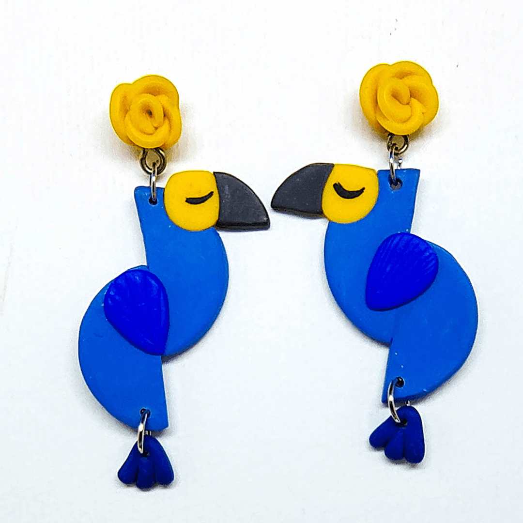 O Brinco Arara Azul da Aurela Studio é feito à mão com cerâmica plástica, garantindo uma peça leve e confortável. Seu visual exclusivo traz uma arte colorida e vibrante que se destaca no look.