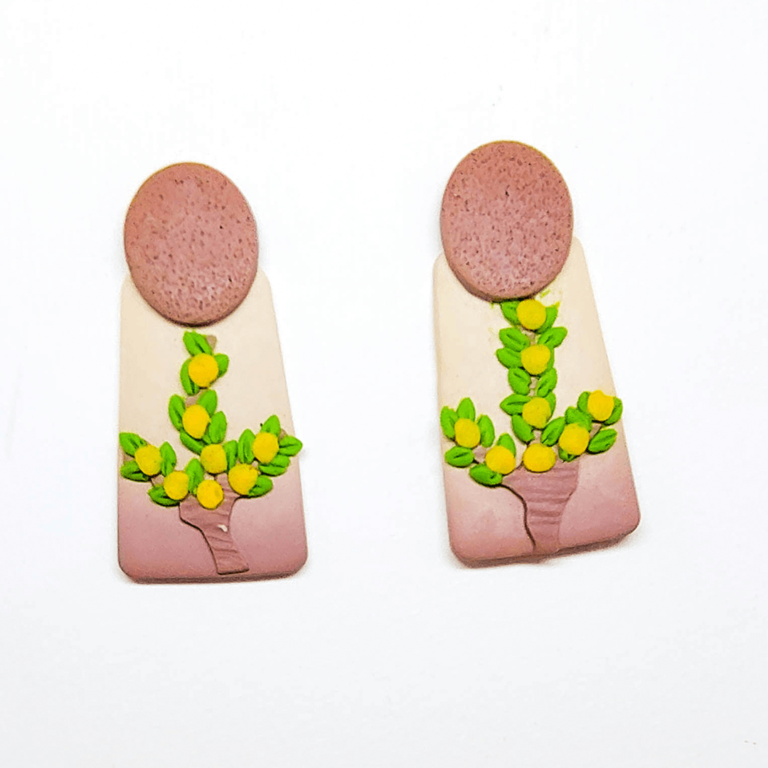 O Brinco Limoeiro da Aurela Studio é feito à mão com cerâmica plástica, garantindo uma peça leve e confortável. Seu visual exclusivo traz uma arte colorida e vibrante que se destaca no look.