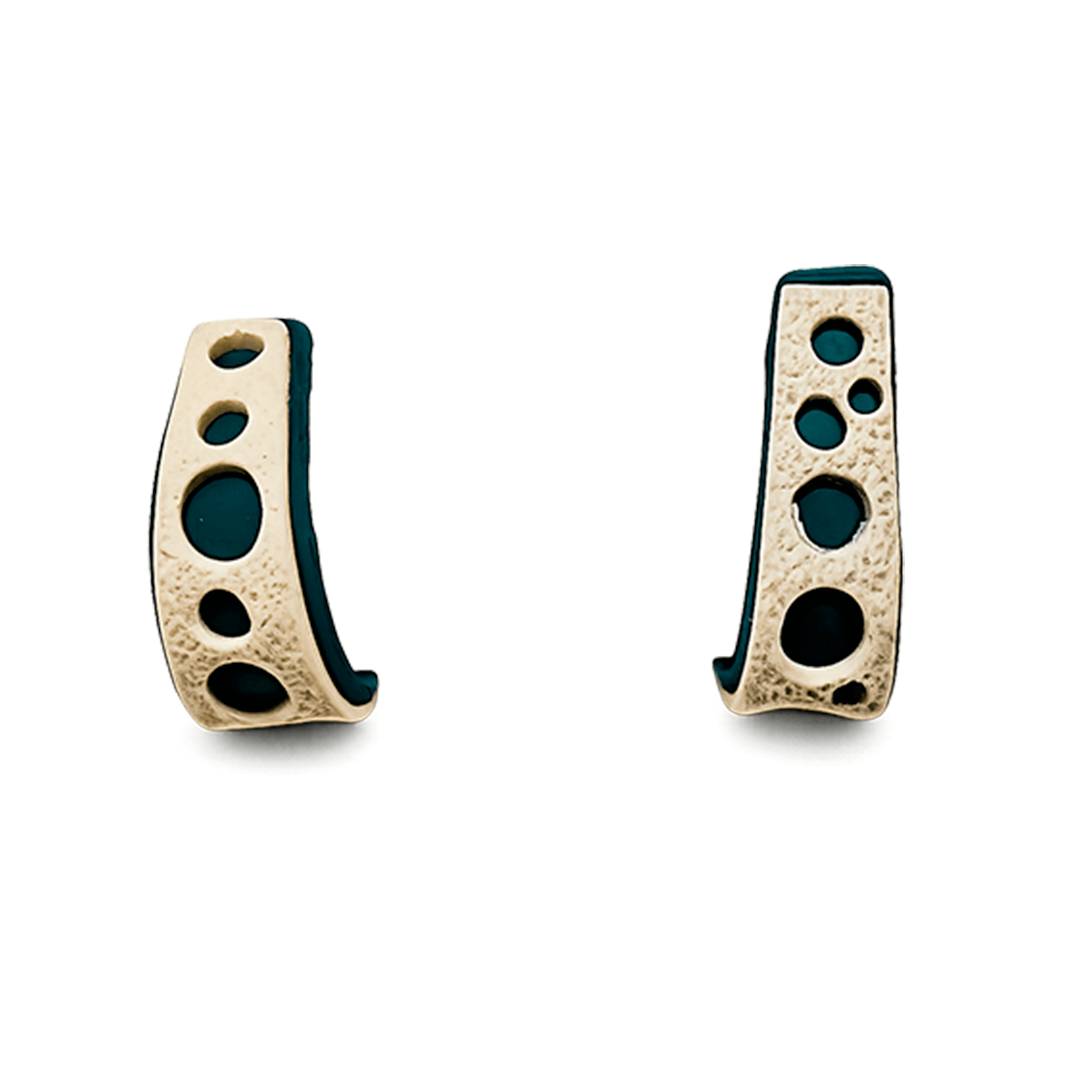 O Brinco Ritmo da Aurela Studio é feito à mão com cerâmica plástica, garantindo uma peça leve e confortável. Seu visual exclusivo traz uma arte colorida e vibrante que se destaca no look.