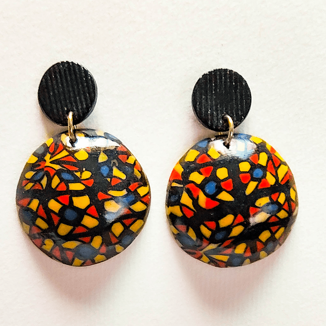 O Brinco Vitral da Aurela Studio é feito à mão com cerâmica plástica, garantindo uma peça leve e confortável. Seu visual exclusivo traz uma arte colorida e vibrante que se destaca no look.